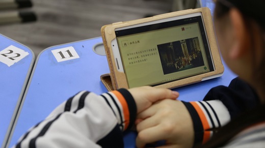 系統手機、平板電腦以及筆記本電腦)接入智慧課堂系統。學生使用平板電腦或手機通過微信掃碼進入青鹿智慧課堂小程序,就可以進行接收課堂教學文件、發送彈幕以及答題互動等課堂互動。