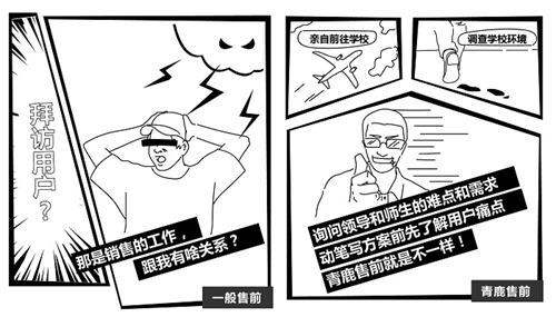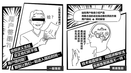 很多人說售前學會FAB(功能、優勢、價值)大法就可以了,但是現實中往往F還沒講完,用戶就煩了。對此,某不愿透露姓名的青鹿資深售前這樣描述售前業務水平:“菜鳥售前強調參數、普通售前堆功能,優秀的售前......就像我們青鹿售前這樣!”一般售前和青鹿售前究竟有什么不一樣呢?