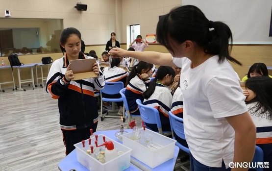 學生通過平板電腦拍攝化學反應并同步給全班同學