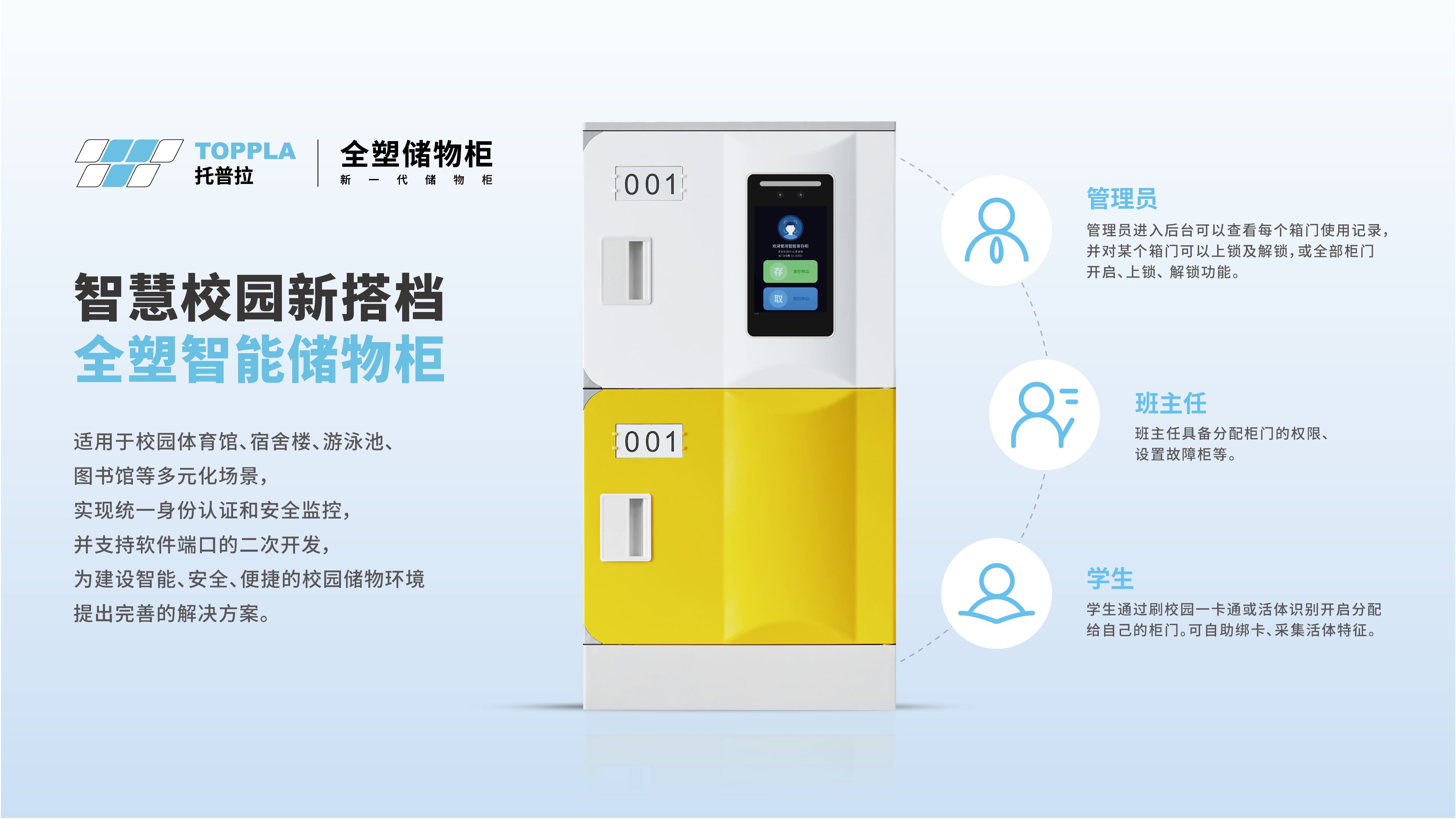 在智能管理方面,托普拉配合校園數(shù)字化建設(shè),提供IC卡、密碼及人臉識(shí)別等多種智慧系統(tǒng),實(shí)現(xiàn)統(tǒng)一管理、高效運(yùn)維,滿足現(xiàn)代化校園對功能與智能的雙重需求。