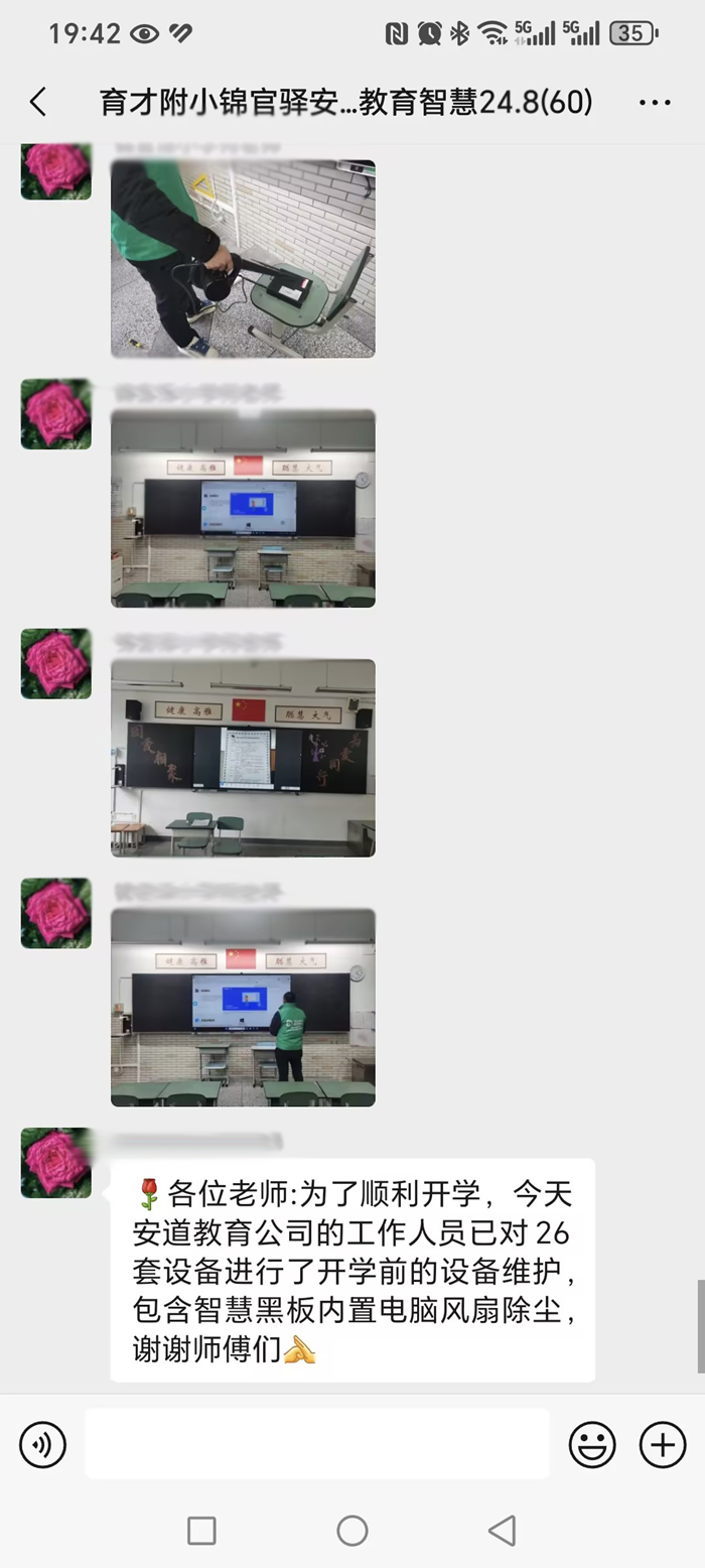 安道巡檢團隊由一群擁有豐富經驗和精湛技術的工程師組成,他們以嚴謹的態度和專業的操作,細致入微地對每一臺設備進行檢查與維護。此外,他們時刻保持與校方深度交流,傾聽教師們在日常使用過程中遇到的問題,并做好詳細記錄。團隊針對這些問題進行了多層級研討,確保問題得到及時解決,這種多層級互動與研討,構建了互動新橋梁。