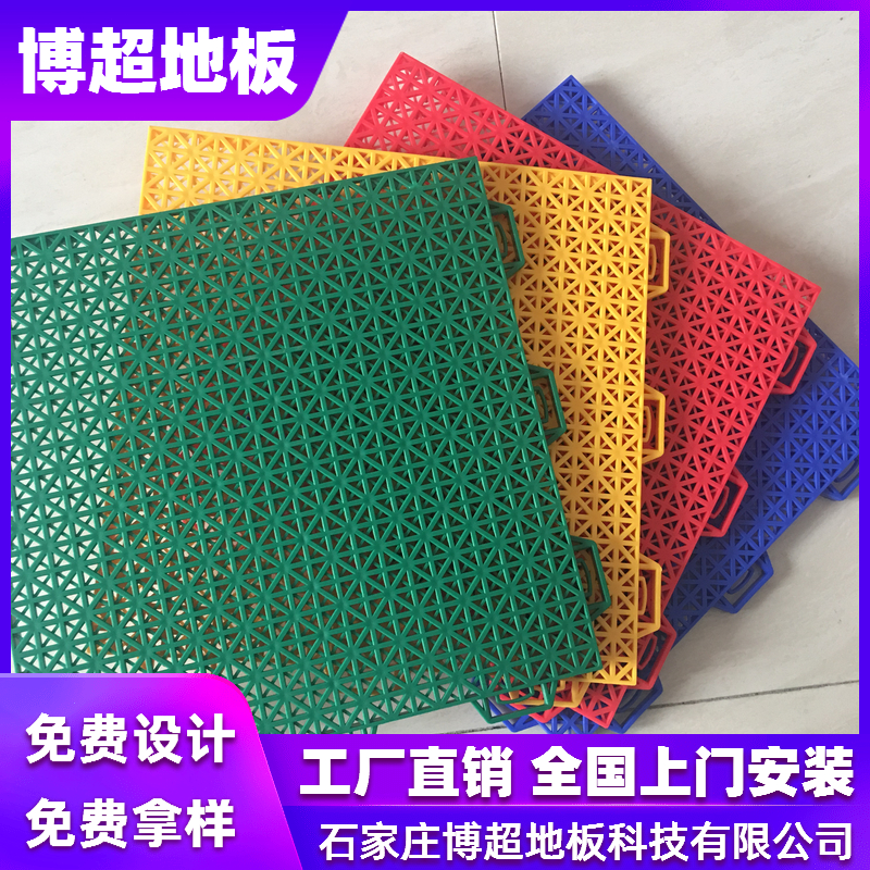 懸浮地板一般分為回收料和純原料生產,博超懸浮地板采用聚丙烯食品級純原料生產,使用年限比較長,而且安全環保,而回收料生產的懸浮地板價格比較低,對人體的傷害比較大,而且還會有刺鼻的味道,而純原料的懸浮地板不會有任何異味