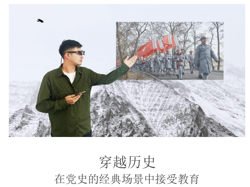 MR黨建教育系統采用前沿的MR技術,結合計算機圖形(CG)技術、計算機仿真技術、人工智能、3D立體顯示技術、人機交互技術、傳感技術、復合光導顯示技術等將三維圖像傳輸到使用者佩戴的增強現實設備中,為使用者構建沉浸、直觀的的增強現實體驗,體驗者通過與虛擬場景進行實時交互,同時與真實空間做虛實結合,從而實現專業黨建內容的呈現,歷史場景的還原和多種場景互動能力。 增強現實技術和科普相結合,通過增強現實系統將使用者帶入不同的拓展領域,運用三維重現的方式,將歷史事件和歷史場景,直觀形象的展現在使用者眼前,讓參與者走出傳統黨建教育的模式,從科技創新的黨建教育中進一步感受黨的歷史,學習黨的精神,參與黨的發展,牢記使命,不忘初心。