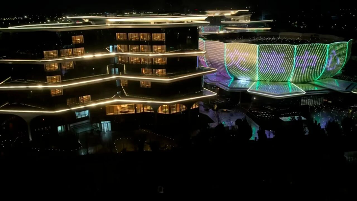 在會展中心部分,針對16個標準展廳+主登錄廳+次登錄廳的不同功能需求,通過精確的照度計算與燈具配比,實現完美的效果呈現。醫學科學城部分則采用RGBW混光技術,通過DMX512控制系統實現外立面動態燈光效果,既展現“鶴湖星光”的詩意畫面,又確保室內功能照明的專業需求。項目特別選用高效節能燈具,彰顯綠色建筑理念。