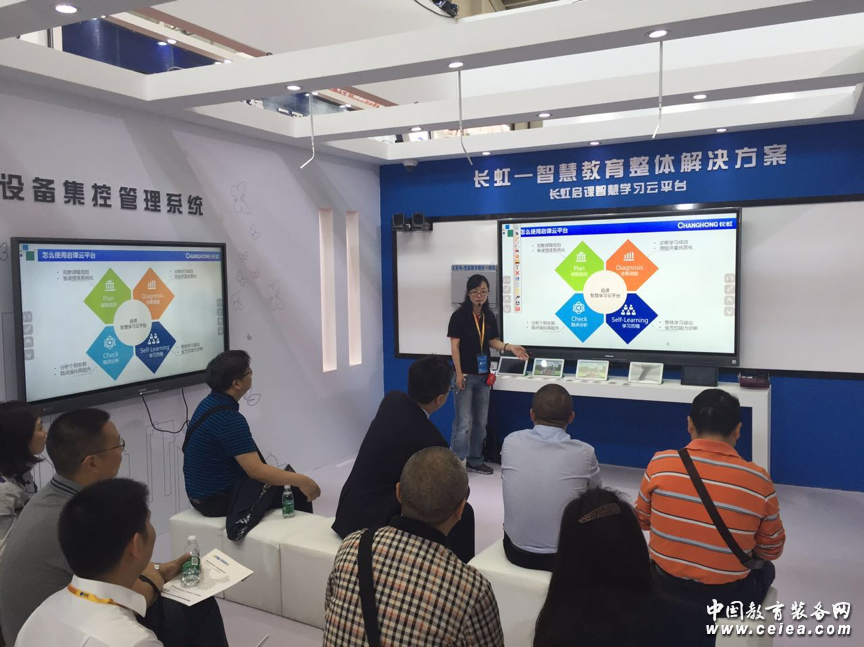 同時展出的長虹“啟課”智慧學習云平臺,以長虹交互式智能平板、平板電腦、