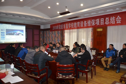 核心提示:12月28日下午,安慶市現代教育技術中心召開會議,總結2018年市直學校教育設備維保項目運行工作,就繼續做好2019年市直學校信息化設備運維服務工作作了部署和安排,市直各校項目聯系人、維保項目運營商參加了會議。