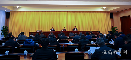 會上,省教育廳、省委編辦、省財政廳,合肥、亳州、安慶市政府,太和、金寨縣政府作了發言。