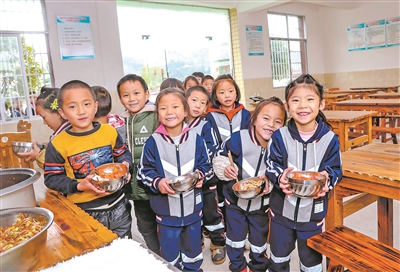 遵義平正仡佬族鄉麥博希望小學的孩子們在吃營養午餐。 本報記者 張勁松 攝