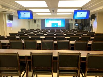 位于15層的職工大會(huì)議室面積超200平方米,可容納120個(gè)參會(huì)人員。itc根據(jù)中心的建設(shè)需求,建設(shè)了專業(yè)擴(kuò)聲系統(tǒng),參考國家廳堂擴(kuò)聲設(shè)計(jì)標(biāo)準(zhǔn)一級進(jìn)行設(shè)計(jì),根據(jù)區(qū)內(nèi)的情況設(shè)計(jì)專業(yè)主音箱,保證每個(gè)空間的聲場聽覺均勻。搭配智能音頻數(shù)字系統(tǒng),提供多種專業(yè)模式供客戶使用,實(shí)現(xiàn)將功能最大化。