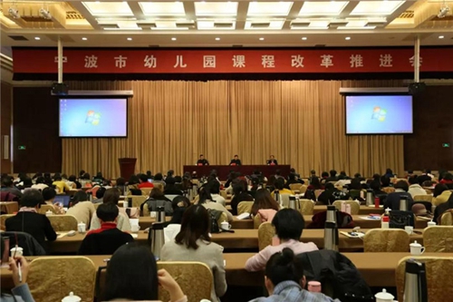 大會宣讀了寧波市教育局《關于成立寧波市幼兒園課程改革領導小組和專家指導小組的通知》,并為專家指導小組成員頒發了聘書。