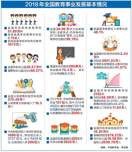 教育部發布2018年全國教育事業發展基本情況 教育改革發展取得新的突破性進展