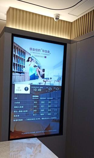 外出旅游,食、住、游、購缺一不可。服務是酒店的主要產品,酒店所有的產品都伴隨服務出售,對酒店產品質量評價,取決于顧客對由服務支配的酒店產品的主觀感受。因此,安裝高檔、大尺寸顯示屏,輪播房間價格表及其它廣告服務,將減少客人咨詢的時間,同時也在第一時間向客人推介了大量可能的服務。