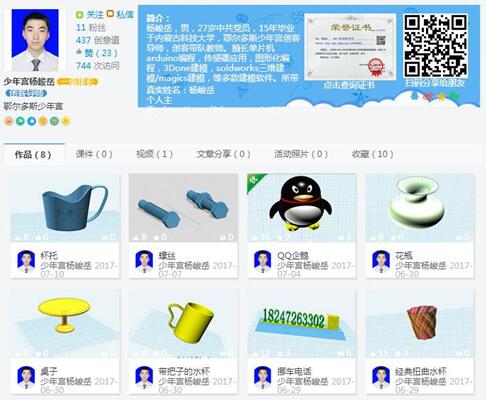 兩年來,少年宮創客教育特別是在3D建模創客教育中取得了優異成績,決定授于少年宮“全國青少年三維創意設計示范校”的稱號。本次授牌標志著少年宮成為了自治區第二所全國創客教育示范基地。為少年宮今后創客教育教學工作的開展指明了方向。