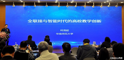 會上,來自華南師范大學的特邀專家柯清超教授現場分享了《全聯接與智能時代的高校教學創新》,提出了“'互聯網+教育'是在全聯接環境下,教師資源、課程與教學、教學組織方式的優化與超越”的觀點,認為未來的教育將是全聯接+大數據+AI,人類智能、機器智能與教育將協同發展,共同進化。