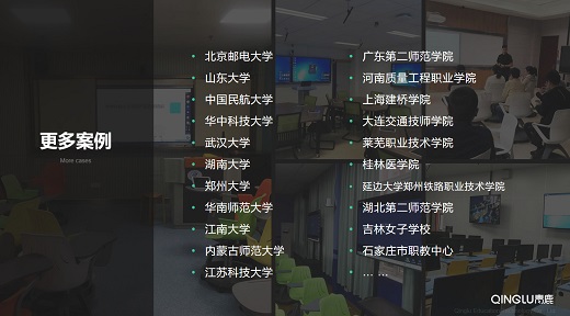 目前,青鹿已與華南師范大學、中國民航大學、北京郵電大學等全國多所高校聯手合作,打造新型教學空間,解放教師生產力、激發學生的學習能力。
