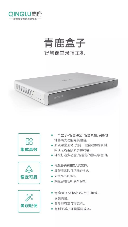 青鹿研討型智慧課堂針對翻轉教學、探究教學、混合式教學等新型教學模式而打造,可穩定實現10組以上多屏互動,保證高效、自然的課堂互動,而互動的實現離不開核心產品——青鹿盒子的支持。