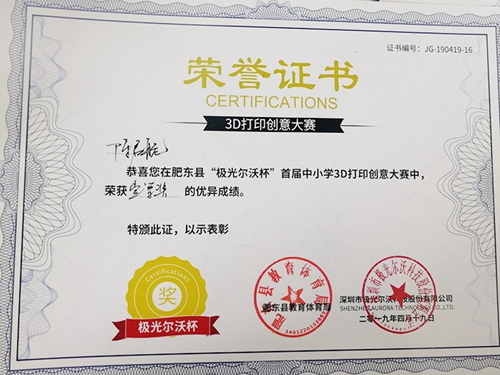 由此可見,基于3D打印技術的創客教育引起全國上下各部門高度重視,這預示著桌面級3D打印機在教育領域的市場將會迅速擴大。極光爾沃作為國內3D打印機一線廠商,有責任也有義務助力3D打印創客教育發展和3D打印應用普及。通過首屆 “極光爾沃杯”3d打印創意大賽在肥東縣的成功舉辦,也預示著會有更多的中小學參與到創客比賽中來。