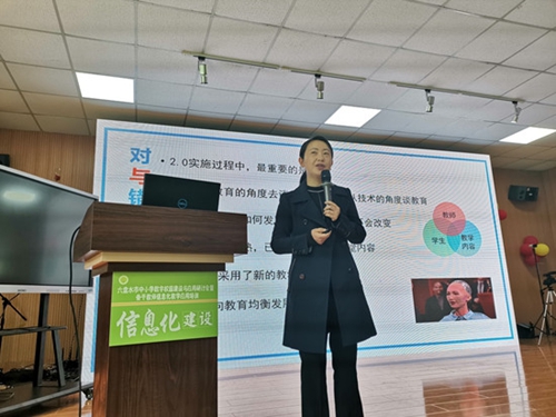 浙江省烏鎮植材小學陸炳康副校長為學員作了《項目化推動 深度構建智慧校園》的專題講座,陸校長先通過教育信息化1.0和2.0的對比,明確了信息校園2.0的核心目標,通過多個教學研究型案例及自身所在學校信息化項目活動開展,讓學員們都清楚了構建數字校園的意義:使校園的管理更加精準化、數據化、智能化。