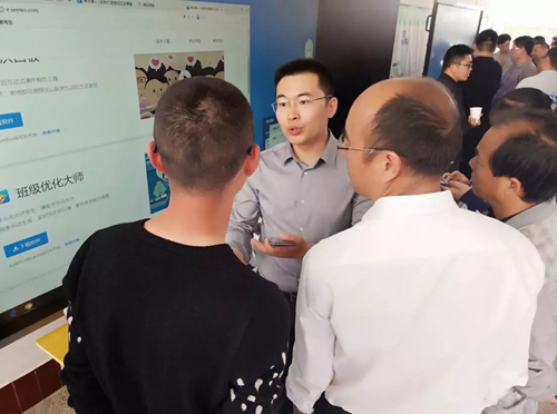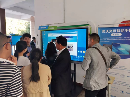 研討會同期,在階梯教室外廳市教育局設立希沃“數字校園”產品展示專區,從數字化環境、數字校園信息窗口、數據管理服務等方案展示了數字校園建設所需的信息化產品,現場工作人員為與會人員詳解各展區產品部署、達成效果、數據采集、分析。