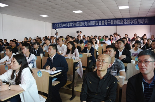 六盤水市各縣電教負責人及教研員,各校分管信息化工作的副校長、骨干教師共計200余人參加。同時,未能親臨現場的老師也通過希沃交互智能錄播進行了在線同步觀摩、學習。
