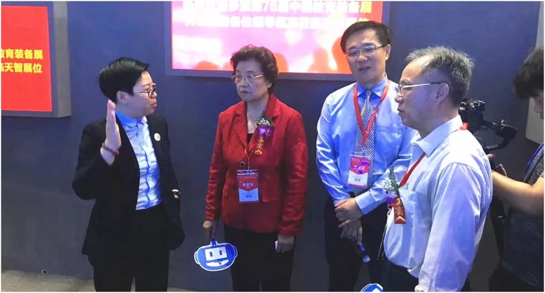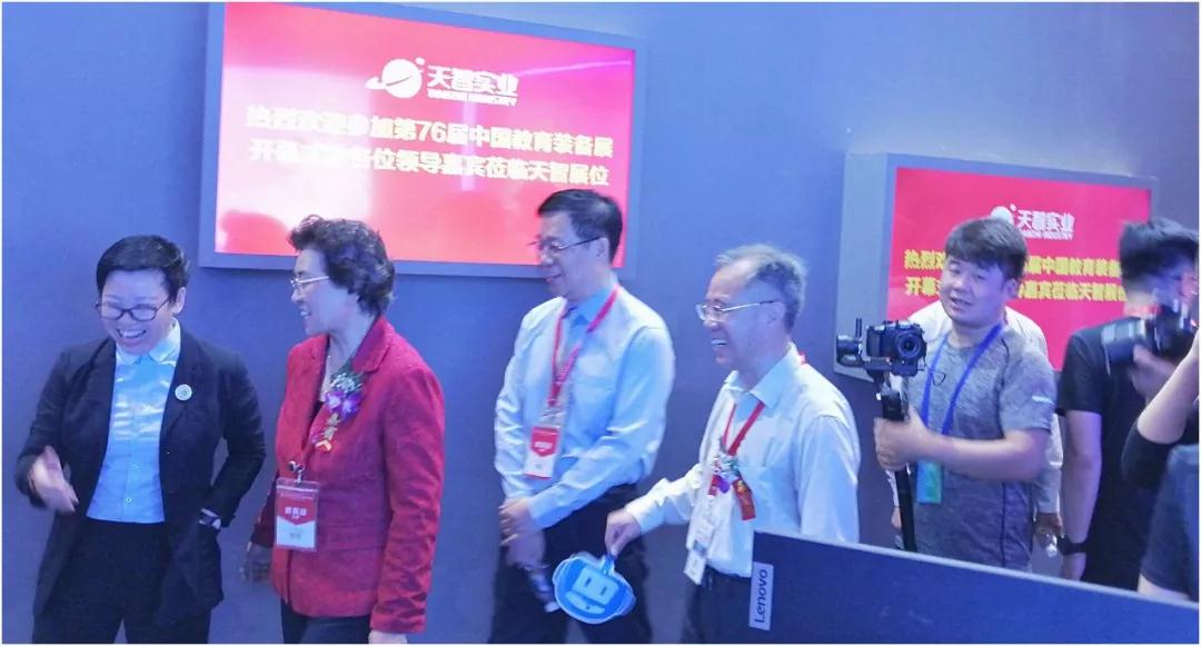 中國關心下一代工作委員會副主任、中紀委駐教育部紀檢組原組長田淑蘭,中國教育裝備行業協會副會長、秘書長夏國明,以及參加開幕式的領導嘉賓蒞臨天智展位參觀指導,并對天智的品牌運營、產品創新和服務水準,尤其是天智能將產品創新與教育改革深度契合的教育情懷,給予了高度贊譽!
