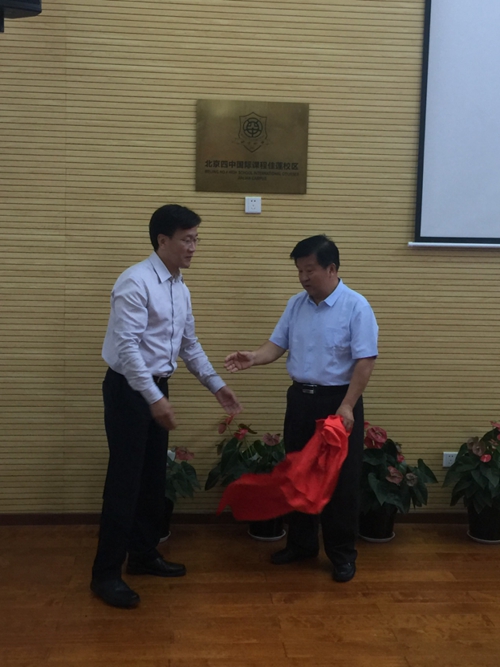 圖為2017年9月份北京四中馬景林校長和佳蓮學校劉子玉校長共同為北京四中國際課程佳蓮校區揭牌