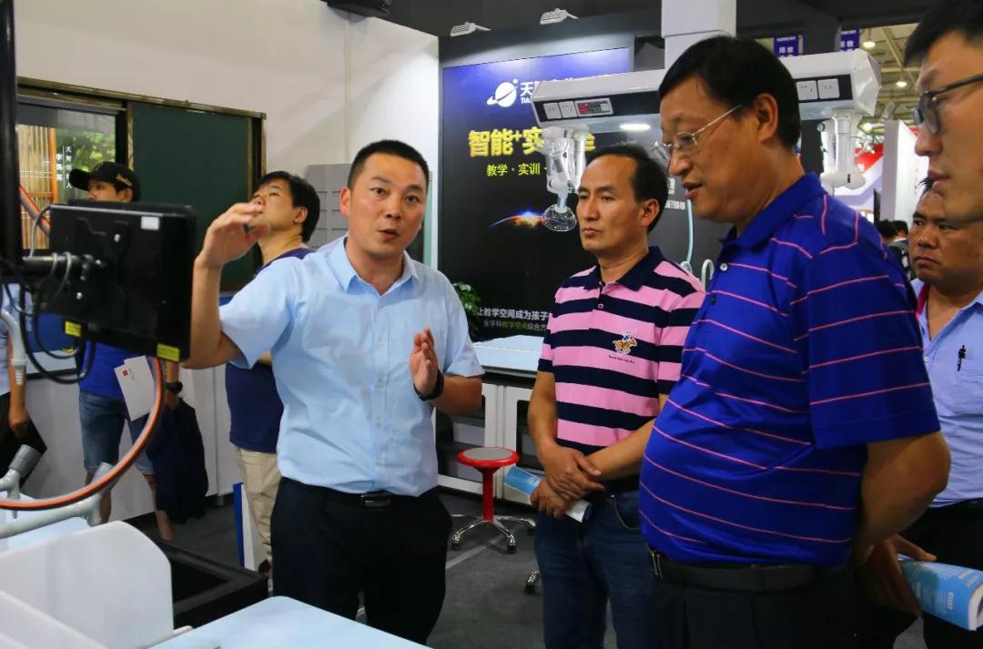 ▲中國教育裝備行業(yè)協(xié)會副會長兼秘書長夏國明蒞臨天智展廳參觀指導(dǎo)