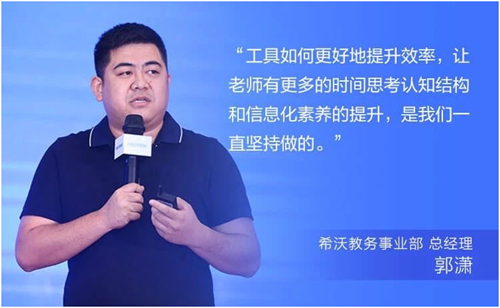 中國電化教育雜志社社長許林先生的致辭,拉開了希沃分論壇的序幕。隨后,來自北師大的朱京曦博士、希沃教務事業部總經理郭瀟、希沃教育研究院院長胡婷玉,從政策要求、未來教師核心能力、教育技術助力教學創新、平臺服務支撐教師成長等全方位探討了教師的未來成長之路。