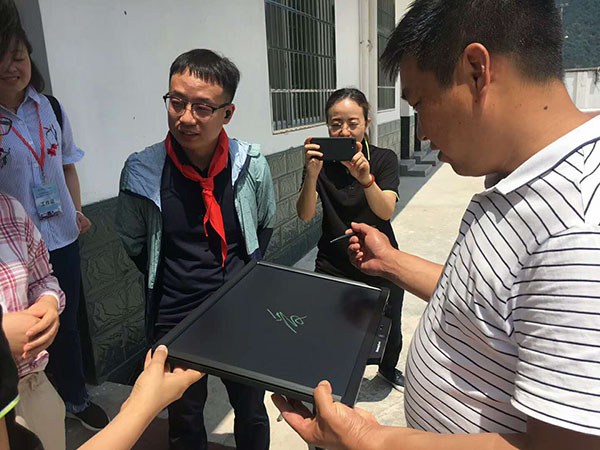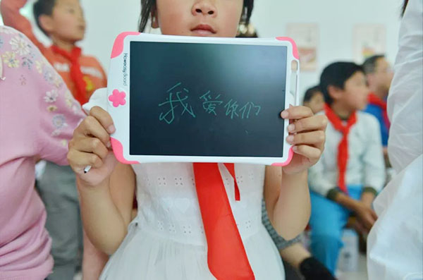 好易寫公益代表向瑤里希望小學捐贈了一批液晶手寫板、液晶壓感黑板等學習設備,為山區的孩子們帶去一份份“愛的禮物”,并祝福孩子們六一快樂。