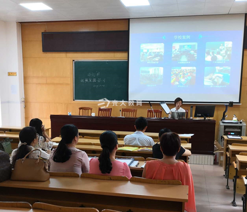 在信宜實驗學校的觀摩課上,臺下14位老師聚精會神地聽完了培訓師朱老師的精彩演示。