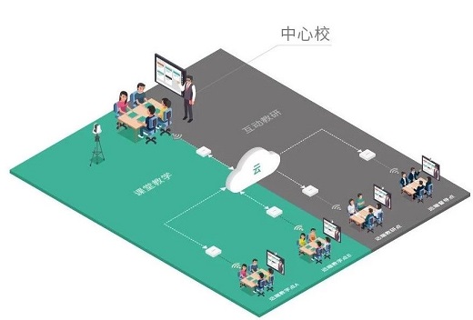 在空中課堂的教學場景之下,主講老師與遠端教室聽課的同學通過云連接在一起,實現線上教學。