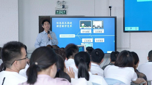 其他學(xué)校在教育信息化的改革上情況又是怎樣的呢?興義市豐都中學(xué)的楊波老師分享他們學(xué)校的智慧課堂建設(shè)經(jīng)驗(yàn)。他說作為一所城鄉(xiāng)結(jié)合部的學(xué)校,在開始做試點(diǎn)時(shí)經(jīng)歷了不少的艱辛,比如學(xué)生多出自農(nóng)村,有些是留守兒童,之前根本沒有接觸過電腦,教師年齡結(jié)構(gòu)偏大,對(duì)智慧課堂的應(yīng)用能力不足。但是,在克服種種困難后,他們看到了學(xué)生成績發(fā)生了喜人的變化。他感概道:“技術(shù)不會(huì)替代老師,但擁有技術(shù)的老師一定會(huì)替代沒有技術(shù)的老師。”