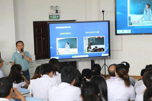 思茅實(shí)驗(yàn)中學(xué)信息中心主任施承李老師分享了該校教育信息化改革的經(jīng)驗(yàn)。從2017年開始引入希沃交互智能平板及希沃教學(xué)軟件,到培訓(xùn)融合,賽課交流,授課示范與教學(xué)研修,近一學(xué)年以來,年輕教師們已經(jīng)能夠?qū)⑾N职装濉嗉?jí)優(yōu)化大師等軟件與學(xué)科教學(xué)實(shí)現(xiàn)巧妙對(duì)接和深度融合。