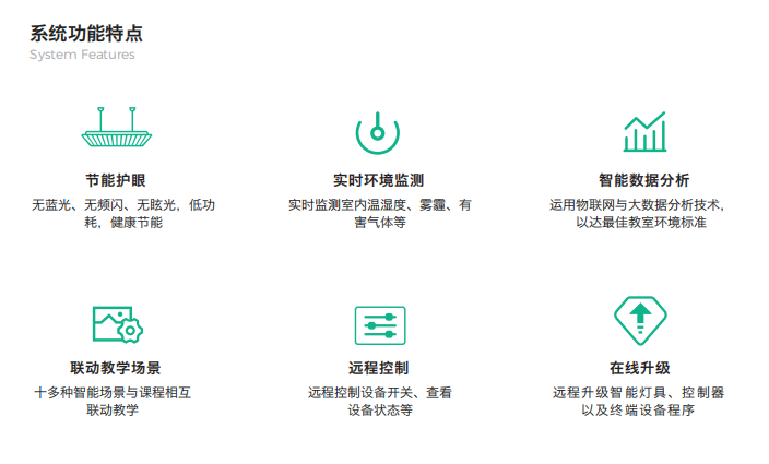 該系統從學生身心健康及人體舒適度需求出發,充分解決了目前學校教室的幾大問題: