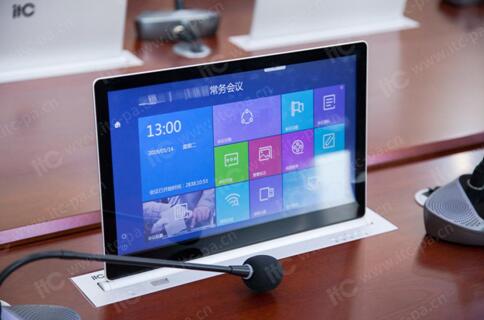 itc嚴格按照政府會議室的會議設計要求,結合會議室的建筑結構及相關設計標準進行設計,選用了一體式雙屏的無紙化會議終端。