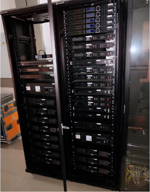 擴聲系統部分。舞臺區左右上方首選用佳比線性陣列音箱作為主擴揚聲器;舞臺前區及臺口兩側搭配返聽音箱、拉聲音箱、超低低音作為輔擴揚聲器;觀眾席采用是進口優質JF系列全頻音箱。根據舞臺區、觀眾席的覆蓋區域進行擴聲角度的精確調整,減少反射,避免聽音盲區,從而獲得更多的直達聲,滿足聲像定位準確,聲場余量充足、覆蓋均勻,聲音清晰的效果。加入相匹配適宜功率的功放及專業周邊處理器,可以修飾語言環境,增強音箱設備效果,大大提高系統的安全穩定性。