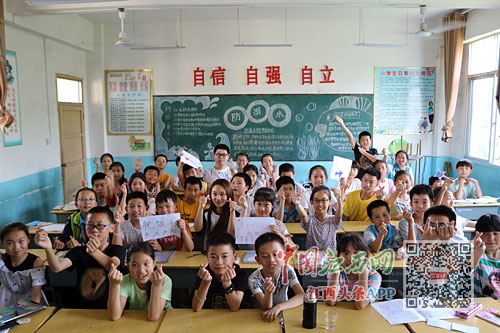 實(shí)習(xí)支教生在萍鄉(xiāng)市湘東區(qū)老關(guān)鎮(zhèn)中心小學(xué)的離別合影
