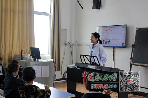 江西科技師范大學(xué)音樂(lè)專(zhuān)業(yè)實(shí)習(xí)支教生劉婧宇在灣里區(qū)羅亭學(xué)校上課