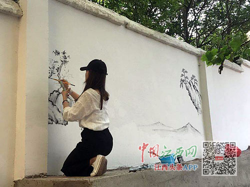 撫州幼專(zhuān)實(shí)習(xí)支教生在美化撫州市東鄉(xiāng)區(qū)小璜鎮(zhèn)小學(xué)校園