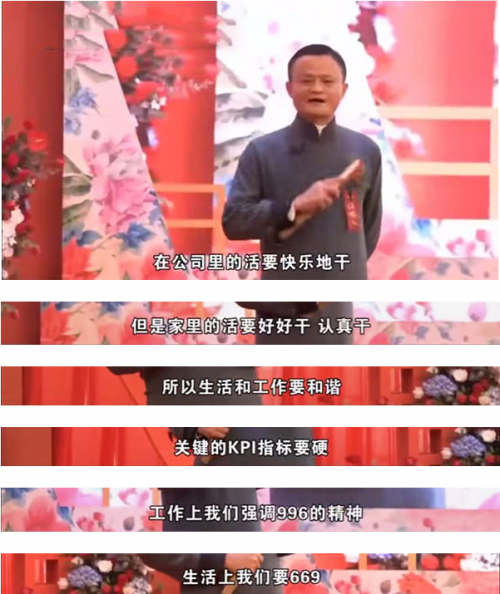 馬云宣稱 :“婚姻的第一個KPI,第一個指標就必須要有結果,要有產品,產品是什么?要生孩子�!�,“婚姻的道路有很多,但是有一條,每個人都必須走,都就是去生孩子,陽光燦爛的時候要修理屋頂,年輕力壯的時候多生孩子�!�