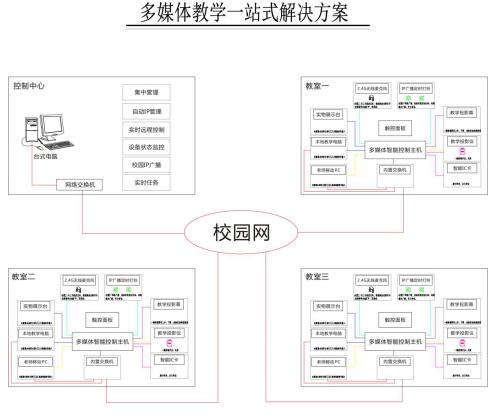 采用TCP/IP協(xié)議通過校園網(wǎng)遠(yuǎn)程集中控制管理多媒體設(shè)備,不需另鋪線路,避免重復(fù)投資及施工;跨網(wǎng)段管理,教室數(shù)量不受限制,管理方式靈活:可以院系、教學(xué)樓等為單位分區(qū)管理。