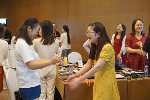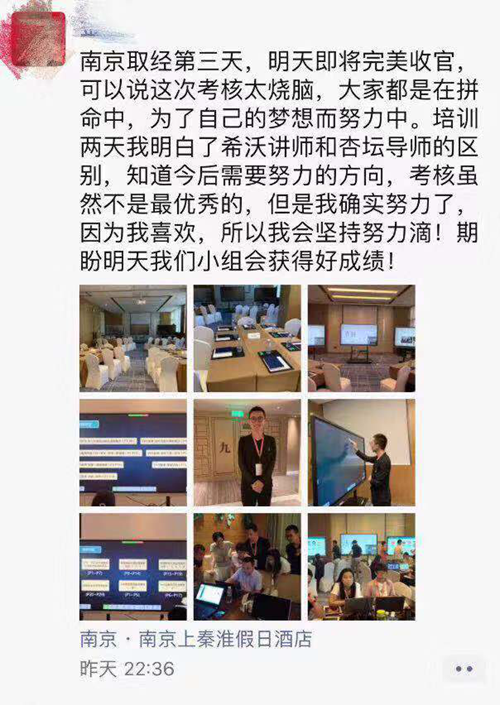 短暫的破冰環(huán)節(jié)后,老師們迎來了緊張的學(xué)習(xí)與考核。培訓(xùn)現(xiàn)場,老師們分組學(xué)習(xí)與討論,寫滿了知識點的筆記本、此起彼伏的討論聲和臉上認(rèn)真的神情,每個老師都沉浸在學(xué)習(xí)中。一位老師說:“這真是我參加過的最緊張的培訓(xùn)了。”