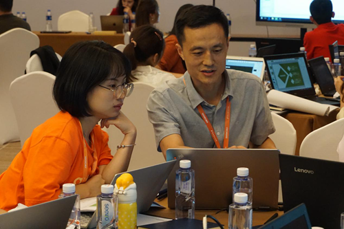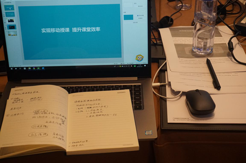 為了展現(xiàn)出最好的學(xué)科融合作品,老師們紛紛放棄了休息的時間。白天的培訓(xùn)緊湊充實,晚上老師們學(xué)習(xí)與討論的熱情依舊高漲。房間、大廳、餐廳,伴著并不明亮的燈光,老師們?nèi)栽谟懻撆c打磨課件,精心準(zhǔn)備。