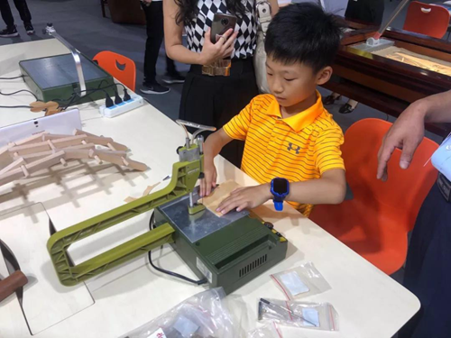 小觀眾使用安全不傷手的器械體驗木藝制作