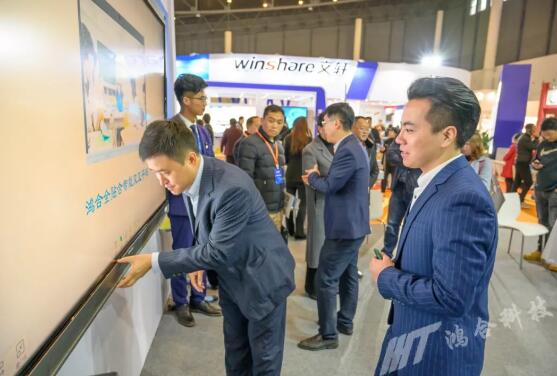 在本屆博覽會(huì)上,鴻合科技憑借長(zhǎng)期服務(wù)教育行業(yè)信息化建設(shè)的深厚經(jīng)驗(yàn),在位于4A080展區(qū)以225平的展位面積,展出了包括鴻合智慧教室、雙師課堂、雙屏教學(xué),校園數(shù)字媒體發(fā)布系統(tǒng)等面向不同應(yīng)用場(chǎng)景的完整生態(tài)教育解決方案,以及鴻合智能交互黑板、智能交互平板、智能交互白板一體機(jī)、幼教交互白板、激光投影機(jī)、鴻合電子書包等一系列先進(jìn)的智能交互硬件設(shè)備。除硬件設(shè)備及解決方案外,鴻合π交互教學(xué)軟件、鴻合愛學(xué)班班教師應(yīng)用軟件也吸引了現(xiàn)場(chǎng)眾多參觀者駐足圍觀。