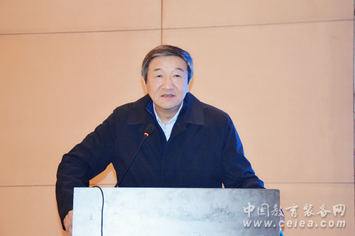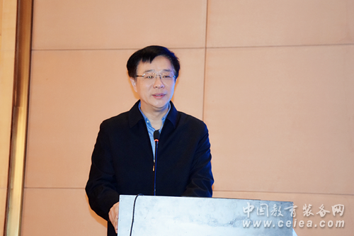 中國(guó)教育裝備行業(yè)協(xié)會(huì)副會(huì)長(zhǎng)、湖北省教育技術(shù)裝備處處長(zhǎng)范義虎致辭