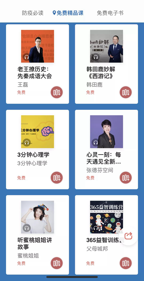 除了“免費(fèi)閱讀 共克時(shí)艱”防疫專(zhuān)題,掌閱還策劃了“疫情防控 院士答疑”,將國(guó)家衛(wèi)健委高級(jí)別專(zhuān)家組成員、著名傳染病學(xué)專(zhuān)家、中國(guó)工程院李蘭娟院士的訪談全程實(shí)錄,制作成有聲專(zhuān)題,免費(fèi)提供給用戶,在線答疑解惑。
