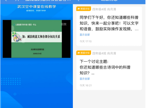 上午9點(diǎn)-11:30,同學(xué)們端坐在家中,觀看本校安排的精彩紛呈的網(wǎng)課,下午2:00-5:00,老師根據(jù)上午的課程鞏固答疑、布置班級(jí)作業(yè)、在線批改作業(yè)。