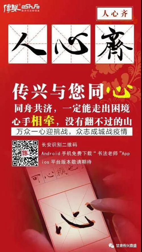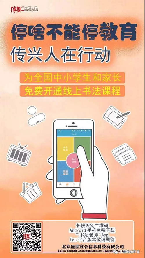 疫情期間,傳興書法提供“傳興書法老師APP”,讓書法老師、學生、書法愛好者隨時可跟著書法名家練習,體會書法文化的博大精深和無窮魅力。