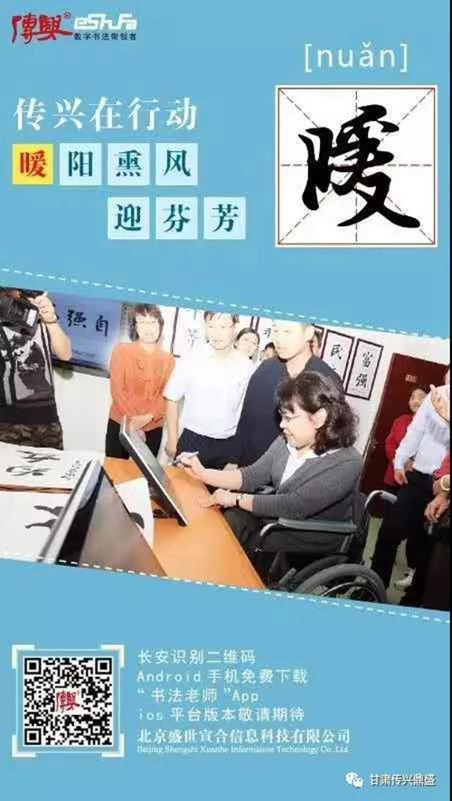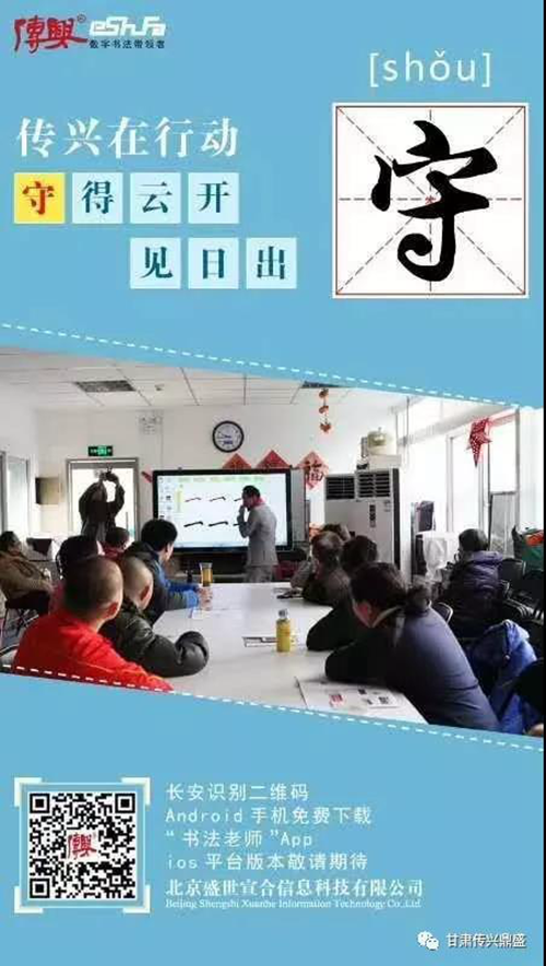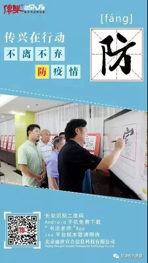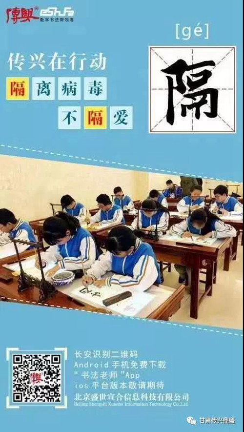 北京盛世宣合信息科技有限公司歷經十年研發的“傳興書法數字化教學系統”,作為本次活動“中小學(英語、閱讀、書法)產品”系列,甘肅傳興鼎盛科技有限公司迅速響應北京總公司的統一組織,積極協同,服務聯動,以各種信息平臺提請各位老師、家長和孩子們,以及書法愛好者關注此項活動的方式及內容,加入免費分享“”傳興書法老師App”指導學習行列,方便學習者居家跟書法名家學書法,認知書法文化,以手機或電腦真切體會數字信息及互聯網技術與傳統書法教育有機融合,所呈現的科學性、系統性和適用性的信息科技化教學新模式。